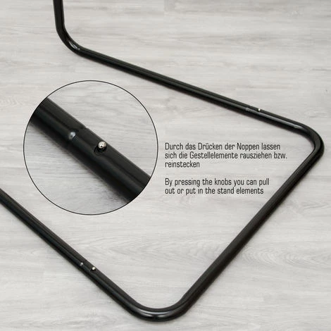 Das Babywippen-Gestell in Schwarz ist schlicht und lässt sich in jedem Raum integrieren und wird zu einem attraktiven Möbelstück. Mit seiner schlanken Standfläche von nur ca. 100×80 cm nimmt das Babygestell nicht viel Platz weg und ist sehr flexibel aufstellbar.