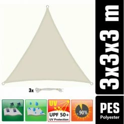 AMANKA 3x3x3 UV Sonnensegel Dreieckig Atmungsaktiv – Sonnenschutz Segel Mit Befestigung