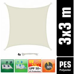 AMANKA 3x3m Sonnensegel Viereckig Wasserdicht – Sonnenschutz Segel Set Mit Befestigung
