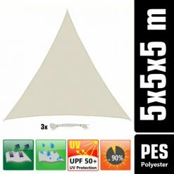 AMANKA 5x5x5 Sonnensegel Dreieckig Wasserdicht – Sonnenschutz Segel Set Mit Befestigung
