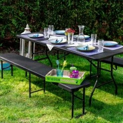 AMANKA Bierzeltgarnitur Für 8 Personen 180cm Esstisch Mit 2 Bänken Rattan Look Klappbar