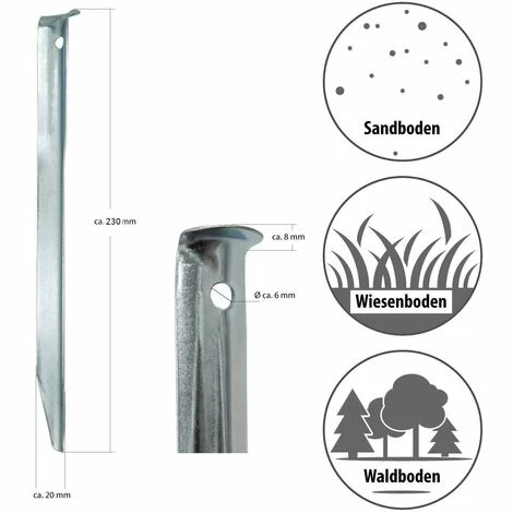 RASEN, WALD UND WIESE – Die Erdanker sind 23 cm lang und perfekt für normalen Boden auf dem Campingplatz. Dazu eignen sich die Stahlheringe für weiche und sandige Böden, auch fürs Zelten am Strand. Sie könnten sie sogar als Schnee-Heringe benutzen!