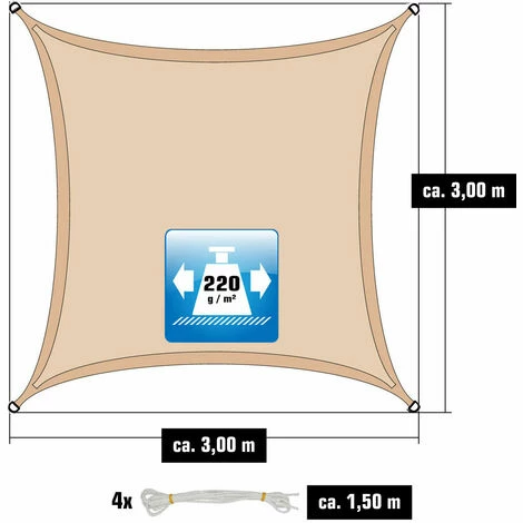 AMANKA Komplett Set:Atmungsaktives Sonnensegel mit Edelstahl Befestigung