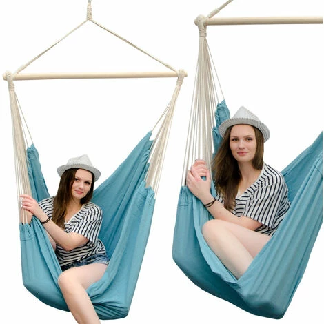 Lassen Sie sich mal so richtig hängen: Im Garten, auf Balkon oder Terrasse und natürlich auch im Kinderzimmer. Was gibt es schöneres, als sich nach einem anstrengenden Tag in den Hängestuhl zu werfen und die Seele baumeln lassen, genießen, dösen oder ein Buch zu lesen?
