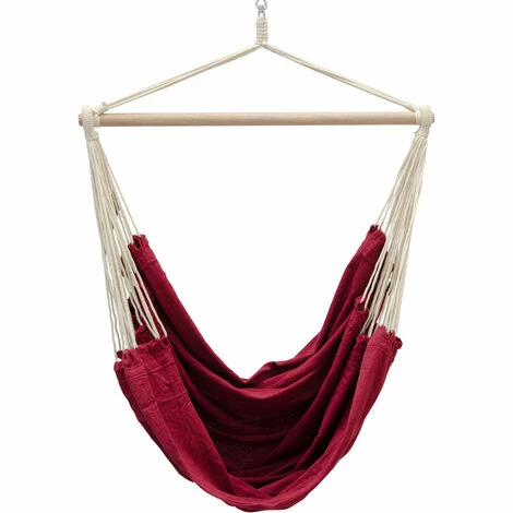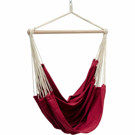 Der Spreitzstab ist aus robustem Holz hergestellt. Der Stab verfügt über Abrutschschutz. Der Hängesesel kann trotzdem leicht abgenommen werden und bei 30°C (Waschmaschine) gewaschen werden.