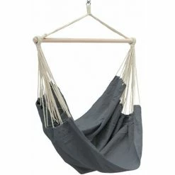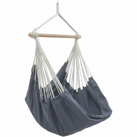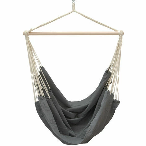 Der Spreizstab ist aus robustem Holz hergestellt, der Stab verfügt über Abrutschschutz. Der Hängesesel kann trotzdem leicht abgenommen werden und bei 30°C (Waschmaschine) gewaschen werden.