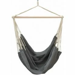 Der Hängestuhl bietet mit seiner Extremlänge von ca. 185 cm auch Erwachsenen die Möglichkeit, sich lang zu machen. Durch die riesige Tuchgröße von ca. 185×130 cm können es sich auch 2 Personen, z.B. ein Erwachsener zusammen mit einem Kind, im Hängesessel bequem machen. Deswegen haben wir auch nicht am Material gespart, sondern dichte 320 g/m² schwere Baumwolle verarbeitet.